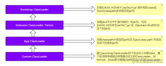 - SPI: 如java.sql.Driver是定义在rt.jar中的接口,按照双亲委派规则会由bootstrap classLoader进行加载,但是Driver可以由用户自己实现,所以会被线程上下文加载器(ThreadContextClassLoader)即系统类加载器(System ClassLoader)进行加载。
