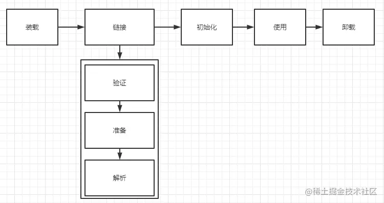 - 假如这个类还没有被加载和连接,则程序先加载并连接该类