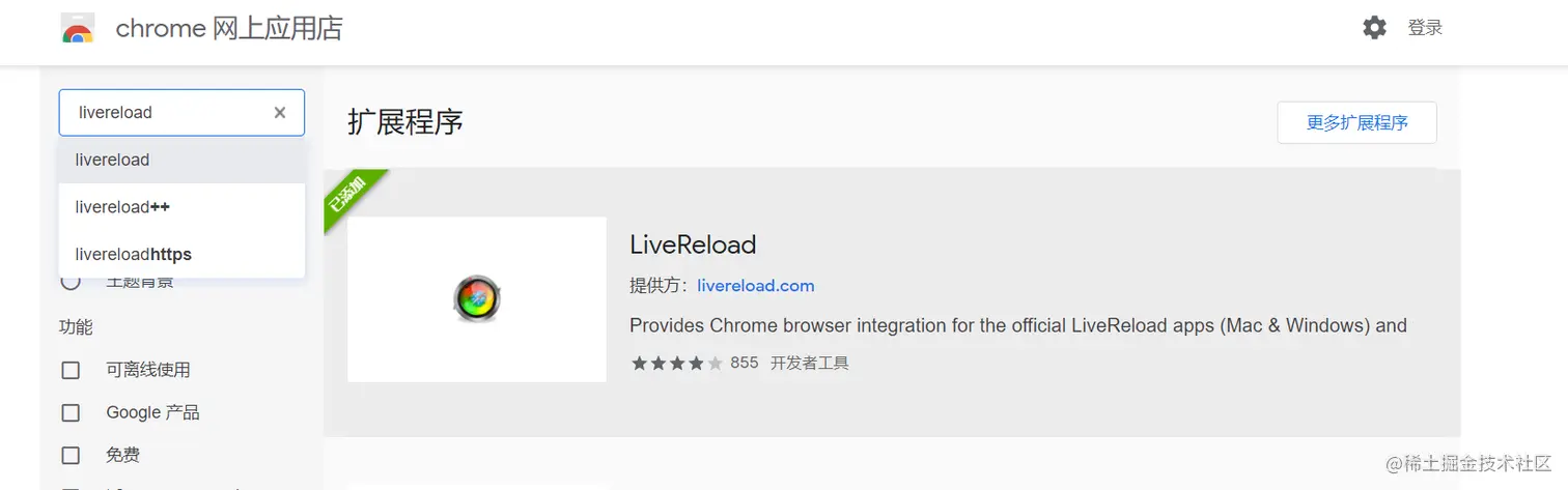 1、在chrome商店中下载livereload插件。