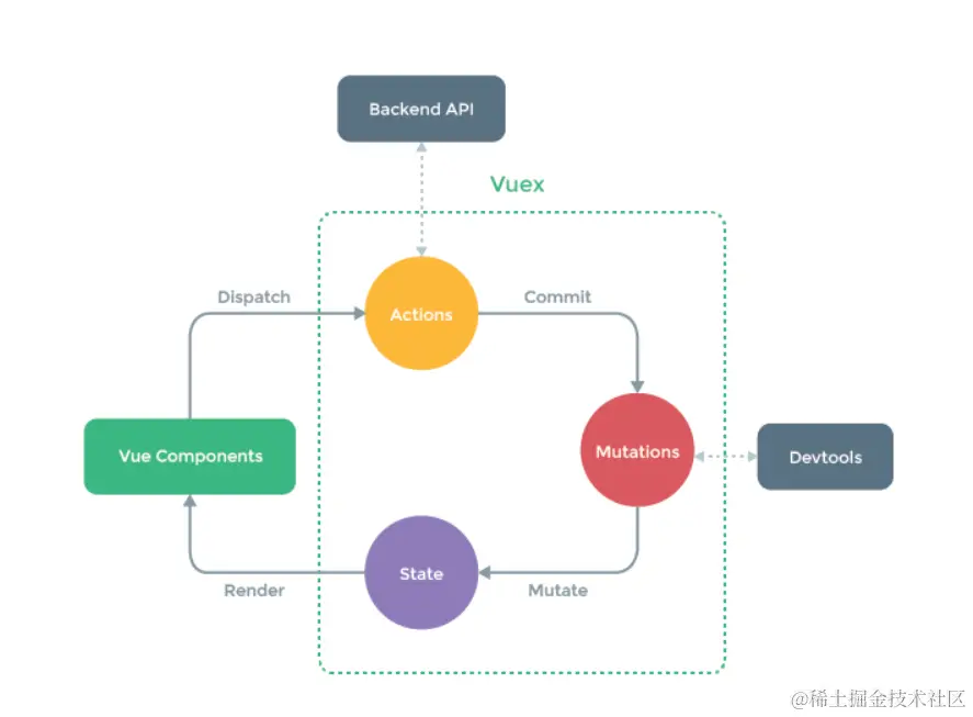 this.$store.state.count,注意在组件中使用coomputed来接收这个,能够实时更新计算。 - 同步修改state,记住前面说到的闭环图,修改store,必须使用mutations的方法,触发mutations的方法是this.$store.commit("addCount"),mutations默认接受的第一个参数是state,第二个参数是commit传过来的值。一个同步使用store的流程处理完成了。