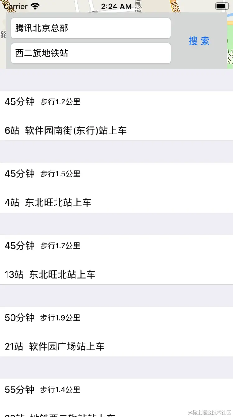 1、检索结果:QMSBusingRouteSearchResult中的NSArray *routes属性包含了检索到的结果,每个结果都是一个独立的公交出行方案QMSBusingRoutePlan。
