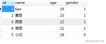 select * from m_user where age = 19