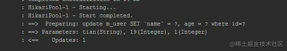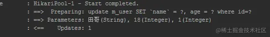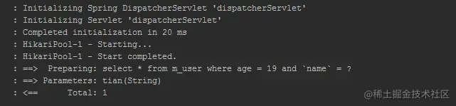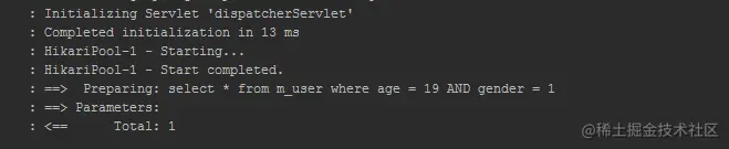 再次执行,输出和前面是一样的。控制台输出的sql中并没有and。这就是所谓的动态映射的强大功能之一。