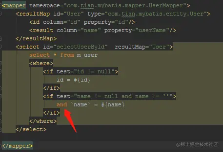 " <if test='username != null'>`name`=#{username},</if>",