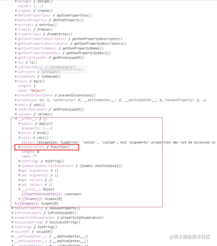 构造函数Object()也是一个对象,所以他也有自身的__proto__指向的是创建他的构造函数的prototype对象。