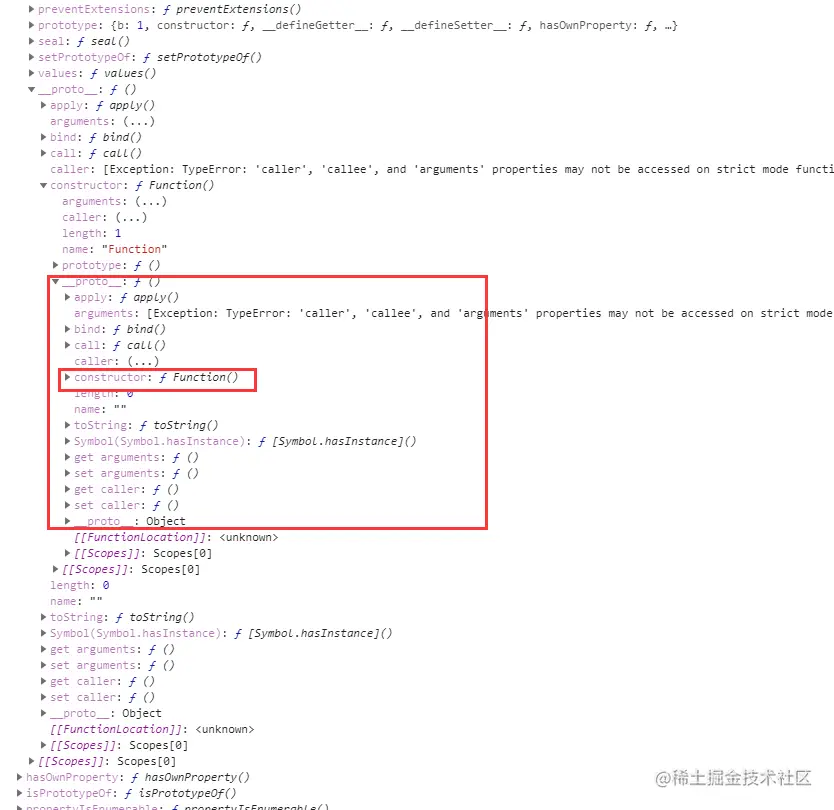 由图可见,Object()的__proto__指向的是Function()的prototype对象。(prototype的constructor属性指向的是构造函数) 顺着一步步的指向,现在找到了Function上,接下来看看Function作为一个对象的__proto__指向。