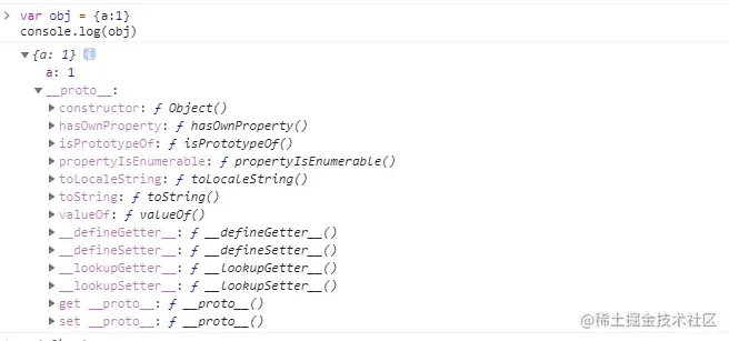 可以看到我们创建的这个对象除了创建时设置的一个属性a,还有个自带的属性__proto__。 接下来看__proto__的指向,由概念我们得出,obj的__proto__指向的是创建obj的对象的prototype。而var obj = {a:1};是var obj = new Object({a:1});的简写。