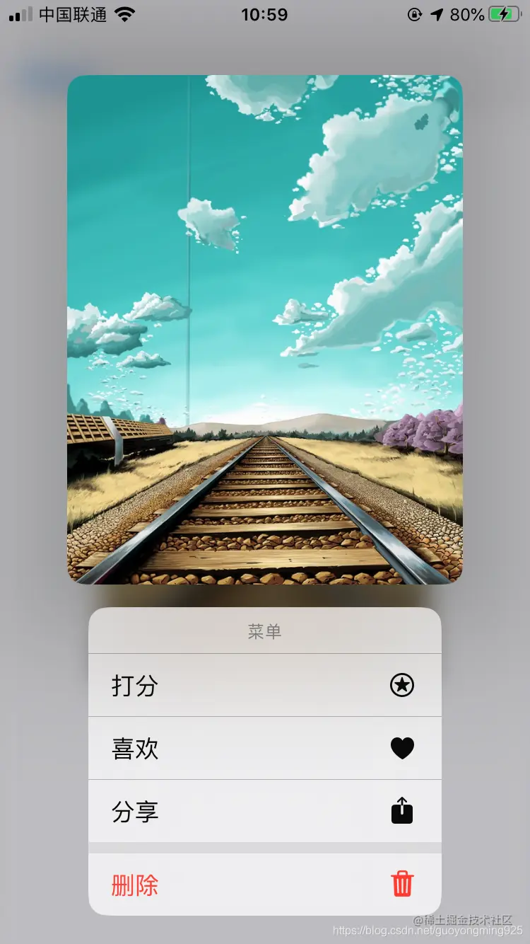 return UIMenu(title: "菜单", children: [ratingMenu, favoriteAction, shareAction, deleteMenu])