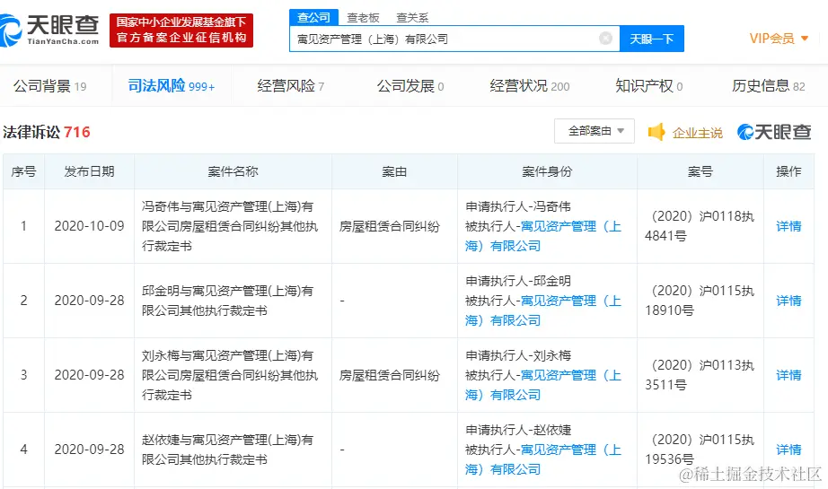 据南方周末报道称,蛋壳公寓在今年2月就曝出深圳业主集体讨要房租,CEO高靖和投资方高管更是在6月被警方带走调查。此外,天眼查数据显示,寓见资产管理有限公司遗留多达716条诉讼开庭公告;上海歆禺房屋租赁有限公司遗留445条在诉案件。