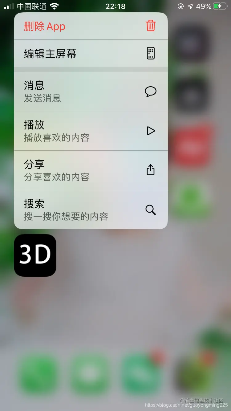 最终运行结果如下,动态创建的第三个UIApplicationShortcutItem对象,没有显示出来。