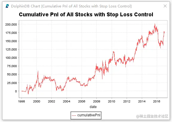 DolphinDB database 虽然是一个通用的分布式时序数据库,但因为内置极其高效的多范式编程语言,开发效率非常高。如果回测不用考虑止损,仅用了3行代码计算MA信号,3行代码进行回测。DolphinDB的运行效率更是惊人,对美国股市18年的全部股票按日进行回测,不止损回测执行耗时仅4秒多,止损回测仅7秒多。