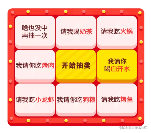 “哈哈哈,忙完了我请你喝奶茶去,这是这次的需求,要做一个抽奖的九宫格,公司要举行活动,需要用到”,打开需求地址,映入眼帘的是一张九宫格图