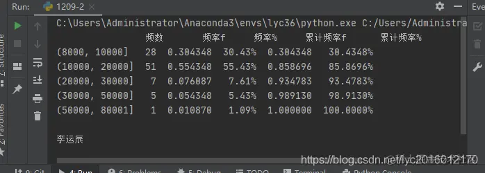 pinshu_df['累计频率%'] = pinshu_df['累计频率f'].map(lambda x: '%.4f%%' % (x * 100))