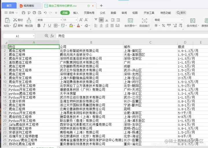 f = codecs.open('爬虫工程师岗位薪资.csv','a','gbk')
