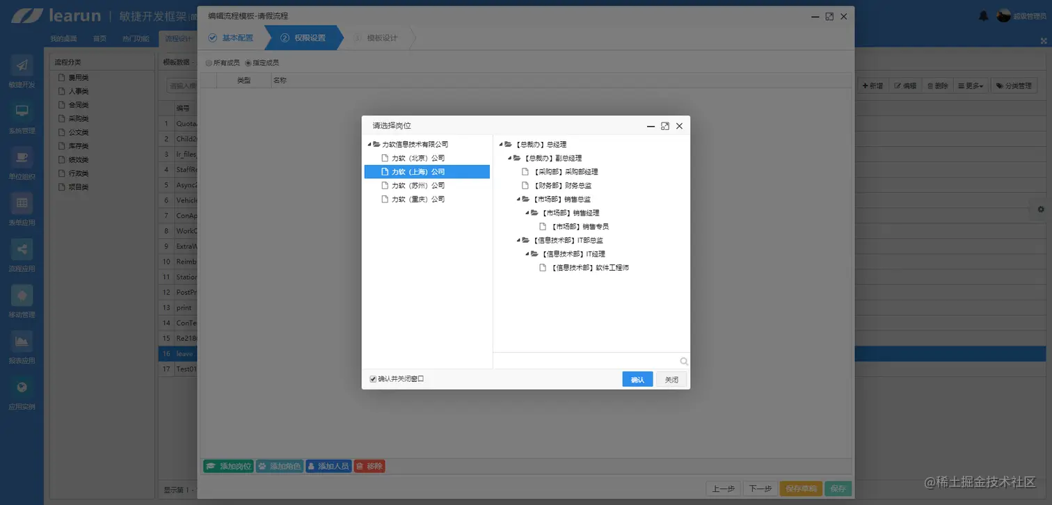 接下来是岗位、角色、人员的权限设置