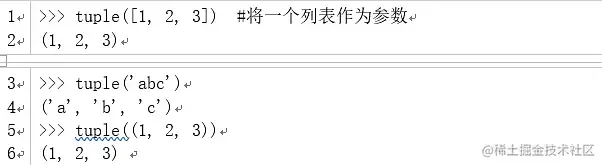 (2)tuple函数是将一个序列作为参数,并将其转换成元组,如果参数已经是元组,就原封不动地返回元组。