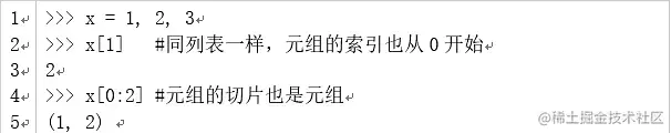(3)元组中元素的访问: