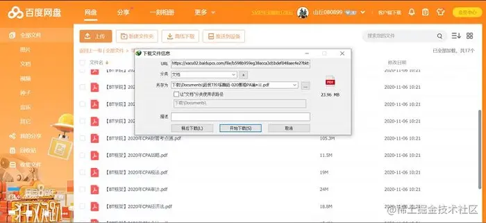 IDM浏览器插件会自动捕获下载命令,然后打开下载信息界面,接着点击“开始下载”按钮就可以以极高的(对比百度网盘直接下载快了不是一点点)速度下载文件。
