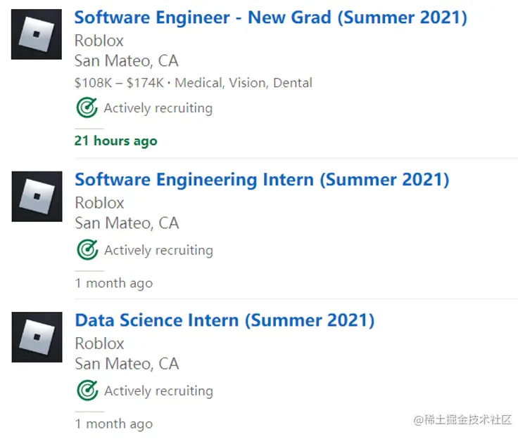 Roblox目前有168个在招职位,其中70%都是Engineer岗,并且还有不少new grad和intern**岗位。