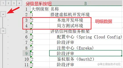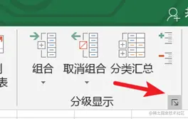 然后关闭 VBA 编辑器。接着再点击“数据”标签内的“分级显示”设置图标: