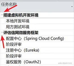 Microsoft Project的任务列表一般情况下都会具有层级结构,即大任务分解为小任务,点击“收缩”按钮,就可以把觉得太长的子任务列表收缩起来。形如: