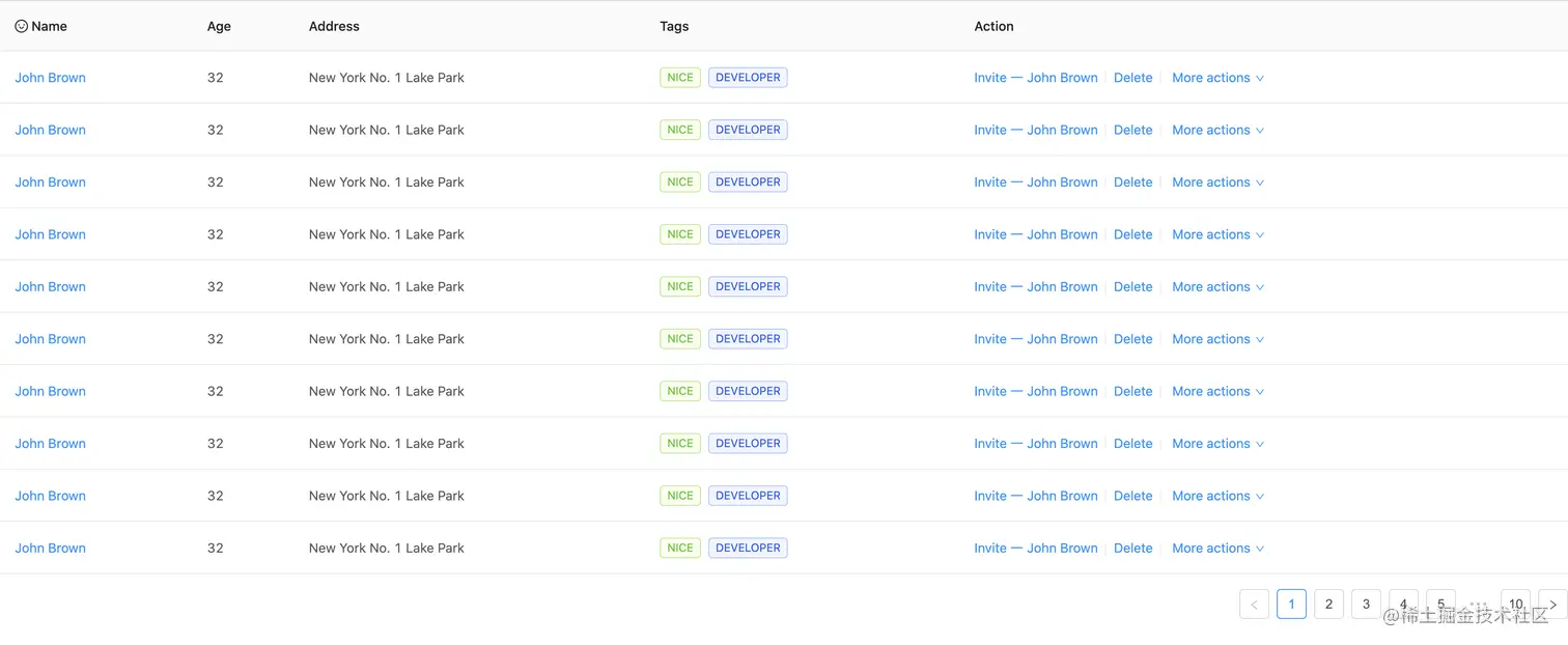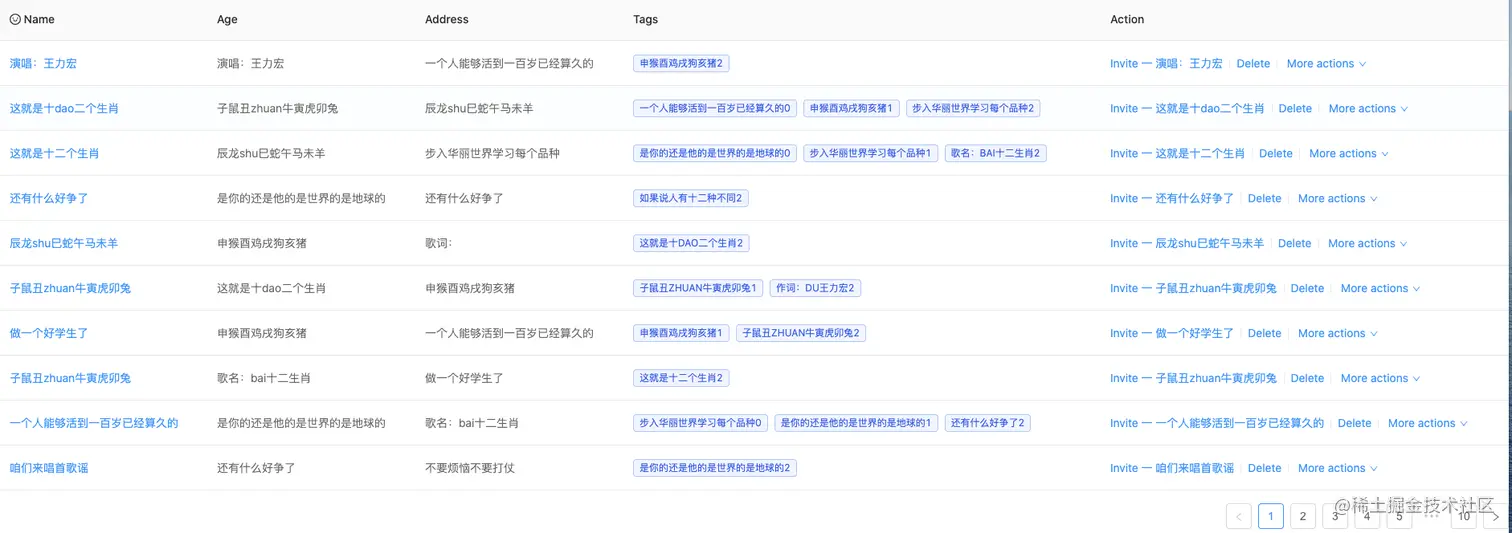 使用的时候就根据后端接口文档类型生成对应字段的对象数组,比如这里就是先生成他10个数据
