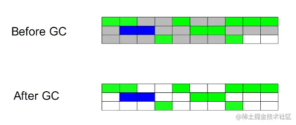 由于不同Java对象存活时间是不一定的,因此,在程序运行一段时间以后,如果不进行内存整理,就会出现零散的内存碎片。碎片最直接的问题就是会导致无法分配大块的内存空间,以及程序运行效率降低。所以,在上面提到的基本垃圾回收算法中,“复制”方式和“标记-整理”方式,都可以解决碎片的问题。