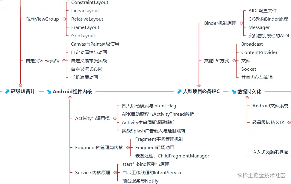 1、高级UI晋升 2、Android组件内核 3、大型项目必备IPC 4、数据持久化 5、Framework内核解析