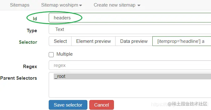 不写代码可以写爬虫程序吗?老师说可以,无编码学爬虫之一。 在 id 中书写一个名称之后,保存该选择器即可。