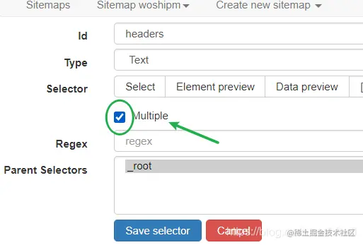 不写代码可以写爬虫程序吗?老师说可以,无编码学爬虫之一。 保存选择器,返回上一界面,在点击 Data preview 出现多条数据表示本次操作完成。