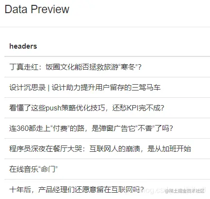 不写代码可以写爬虫程序吗?老师说可以,无编码学爬虫之一。 注意最终的本地文件中的列名称如下,前面两个是系统自动生成的忽略即可,最后的一列是我们希望的数据,并且列名为刚才定义的 id 值。