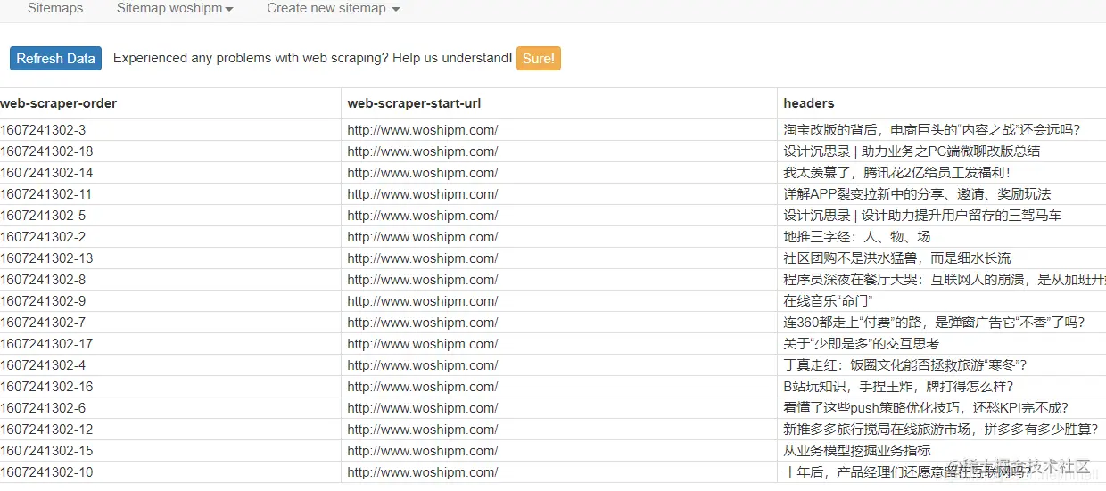 不写代码可以写爬虫程序吗?老师说可以,无编码学爬虫之一。 此时注意到 sitemaps 已经可以点击,点击之后会罗列出所有的 sitemap,其实就是你可以写多个爬虫程序,这个地方是个清单。