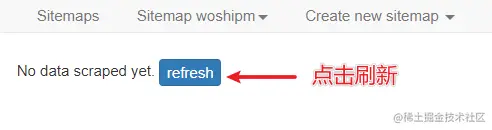输入 sitemap name 与 start url 之后,就可以创建一个待爬取的网站了。输入的内容如下: