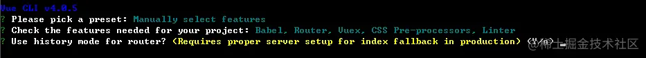 选择是否使用路由 history router,其实直白来说就是是否路径带 # 号,建议选择 N,否则服务器还要进行配置
