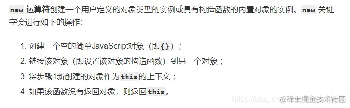 这个在面试中经常会碰到,其实很简单,只要理解new运算符做了什么就可以了。去MDN上查找关于new运算符的解释: