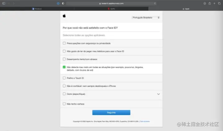 除了上述问题,苹果还询问了用户对于 Face ID 的使用感受是否满意。如果用户选择不满意,苹果会提供用户下列不满意的选项,以让他们更好了解用户的使用痛点: