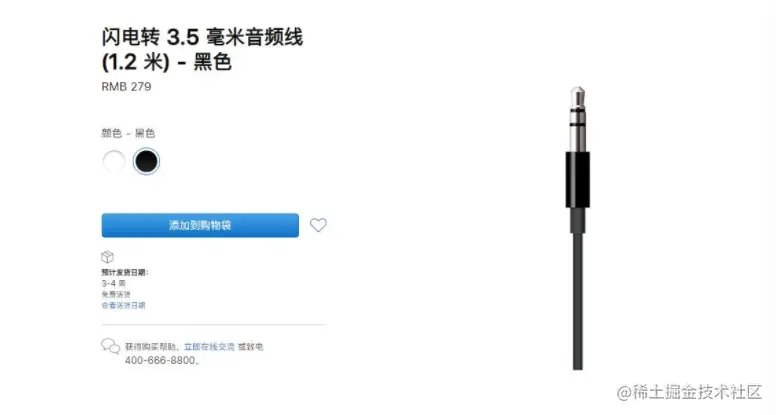 该音频线有黑色或白色两种选择,价格为 279 元。