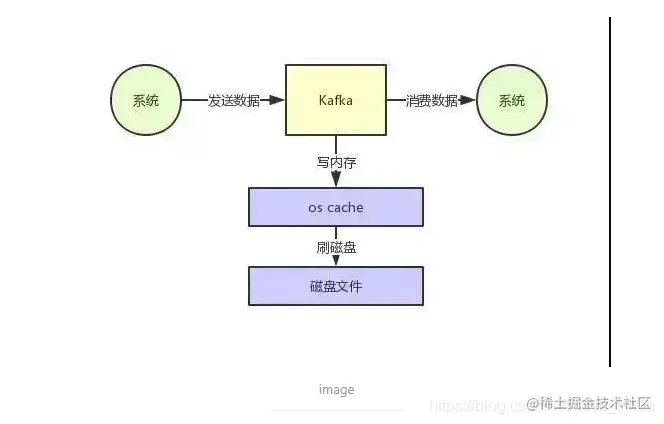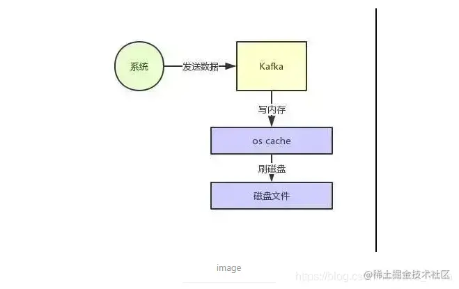 你在写入磁盘文件的时候,可以直接写入这个 OS Cache 里,也就是仅仅写入内存中,接下来由操作系统自己决定什么时候把 OS Cache 里的数据真的刷入磁盘文件中。