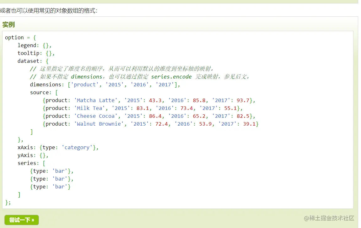 echarts中第一个是option。echats各种信息就是在这里面配置的
