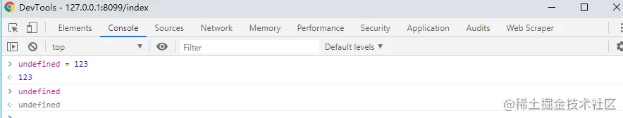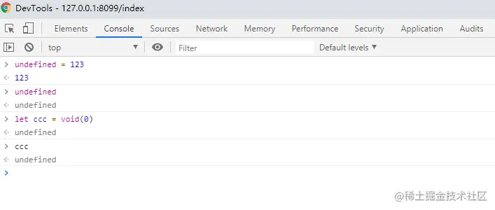 可以看到,目前在控制台是无法更改undefined的值,谁告诉我怎么改undefined变量23333。不过为了严谨期间,如果真的需要把任意一个表达式变成undefined值,最好还是用void(0)(就是这么严谨[狗头])