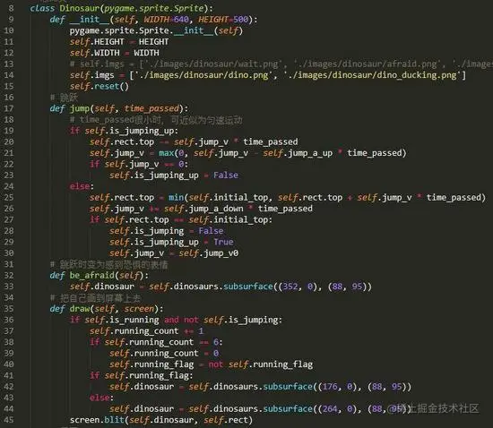 小恐龙类的定义与飞龙类类似,只不过状态要更加丰富一些,并且通过匀加速直线公式模拟恐龙的跳跃和下降的动作。