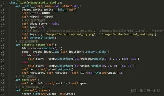 其中,move函数的作用为使随机生成的植物不断地左移,来实现小恐龙不断右移的效果。