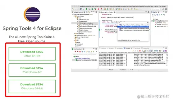 第二步:介绍一款 Spring 定制开发者 IDE:Spring Tools Suite简称 STS。它是 一个专门开发 Spring 项目的Eclipse工具。使用步骤如下: