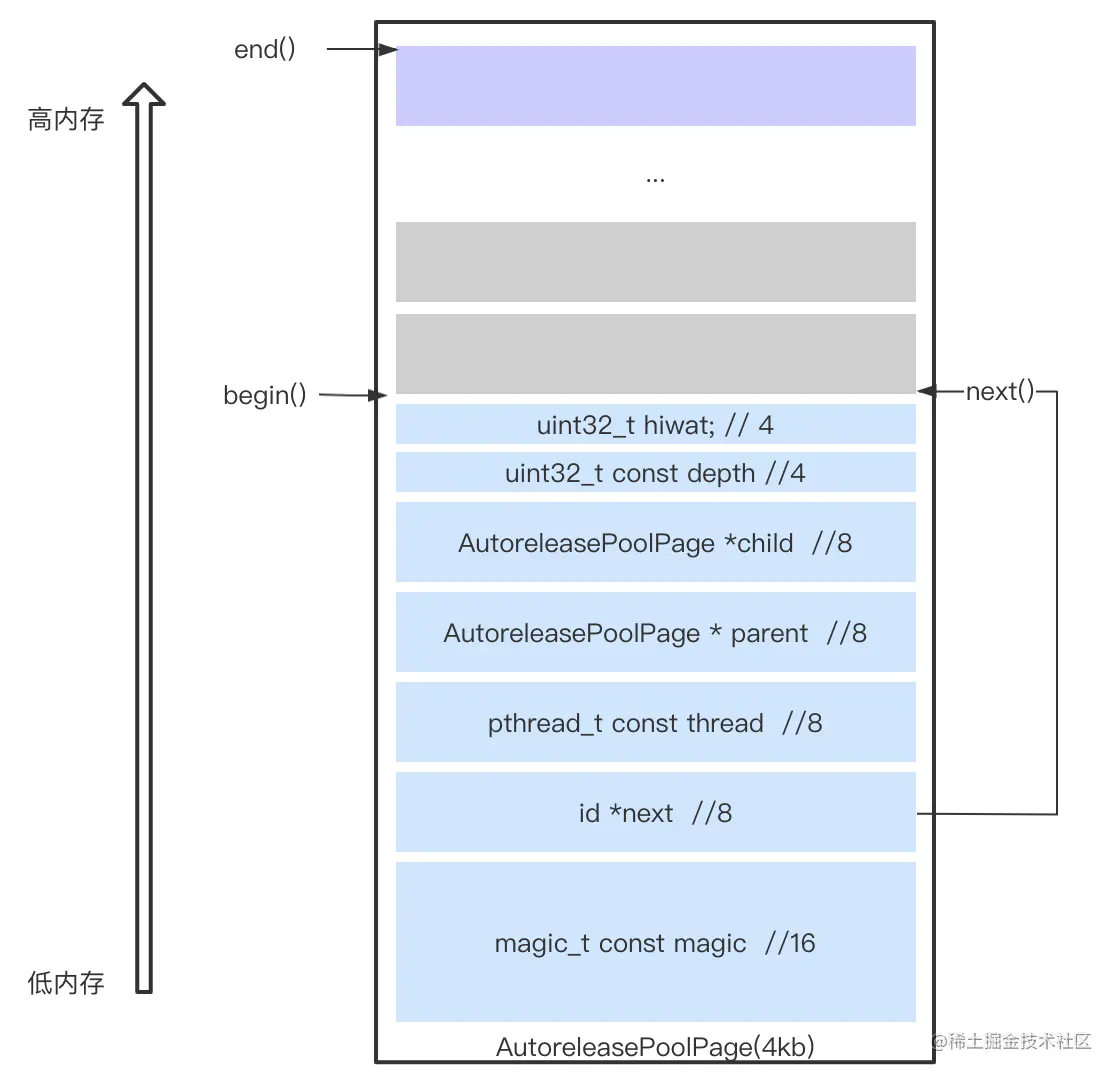 AutoreleasePoolPageData(__unsafe_unretained id* _next, pthread_t _thread, AutoreleasePoolPage* _parent, uint32_t _depth, uint32_t _hiwat)