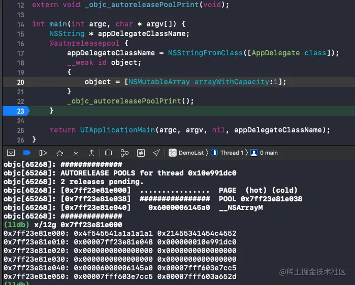 此处还有一个问题,我们并没有创建自动释放池,但是打印的结果是有的,这是什么时候创建的呢?在后面的分析中会说明。