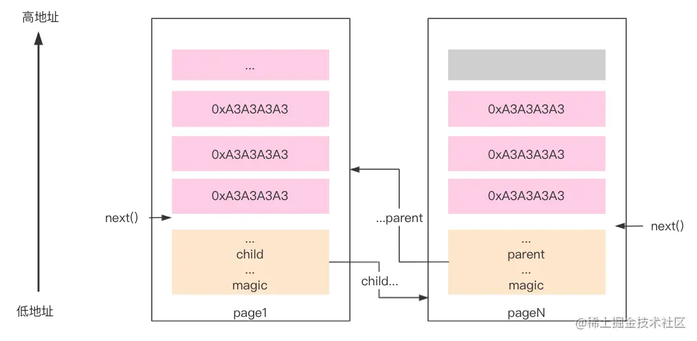 0x7ff23e81e048为当前的page->next指向的位置 -