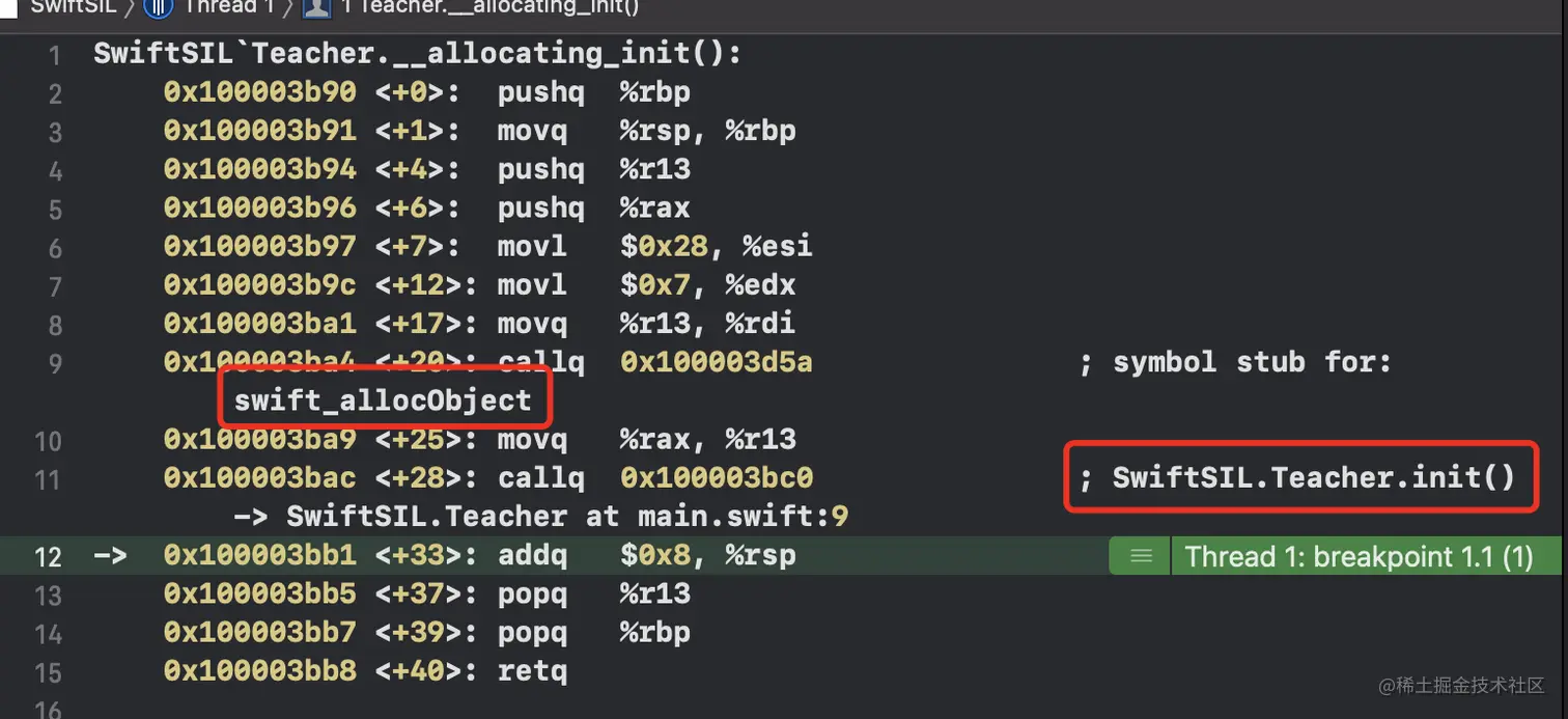swift_allocObject,这样我们就可以定位swift源码,查看类的结构了。这个我们放在后面文章分析。