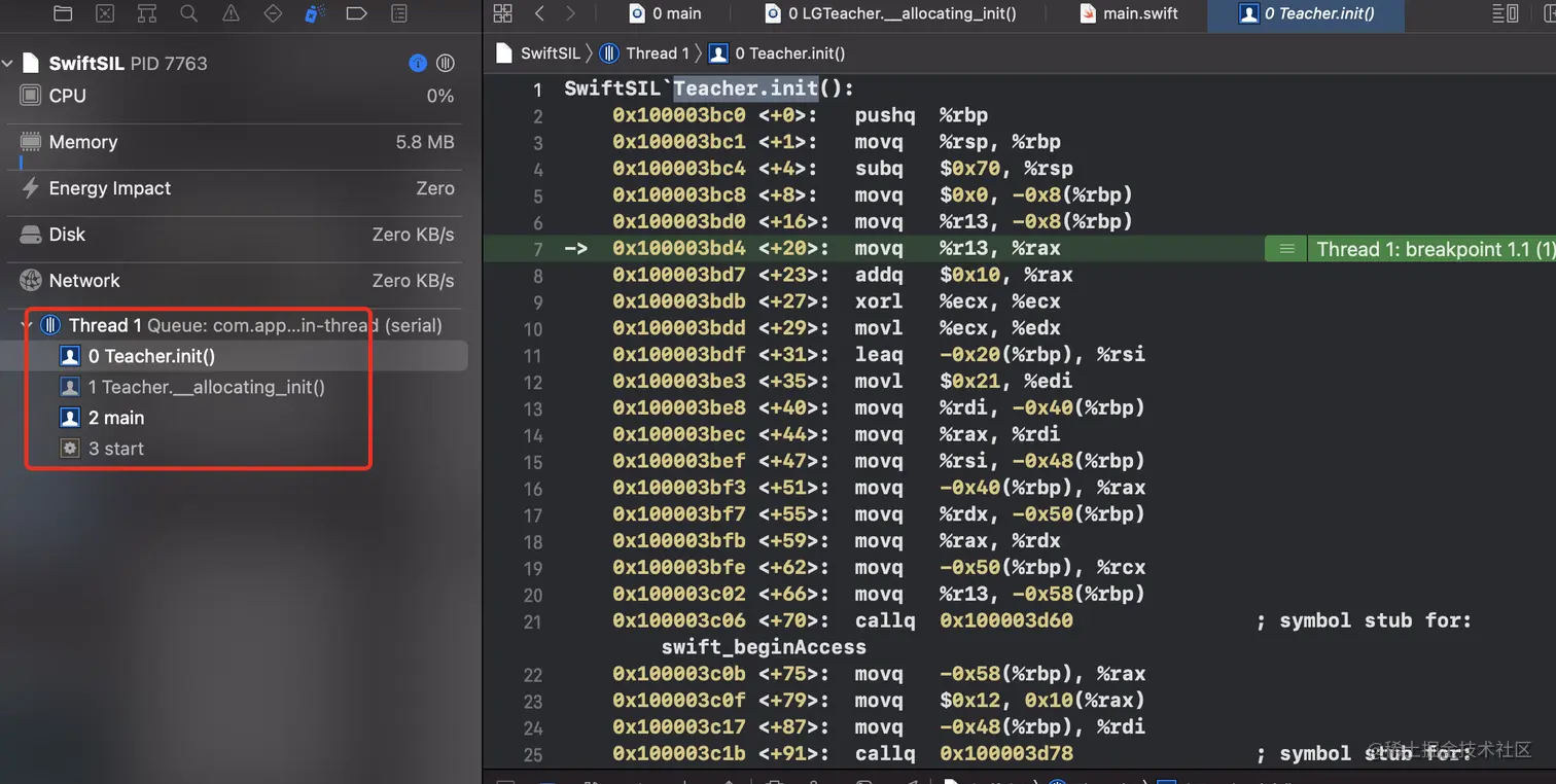 再SIL文件中搜索main函数中出现的@main.Teacher.__allocating_init(),就能找到这个方法的具体实现: