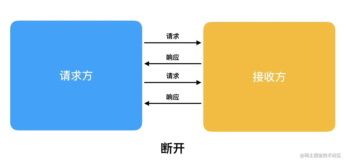 HTTP1.0:一次请求一次响应,然后断开。每一次请求都需要建立连接(三次握手),每次响应结束后都需要断开连接(四次挥手)