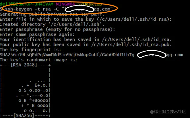 - 打开命令行,输入 ssh-keygen -t rsa。
